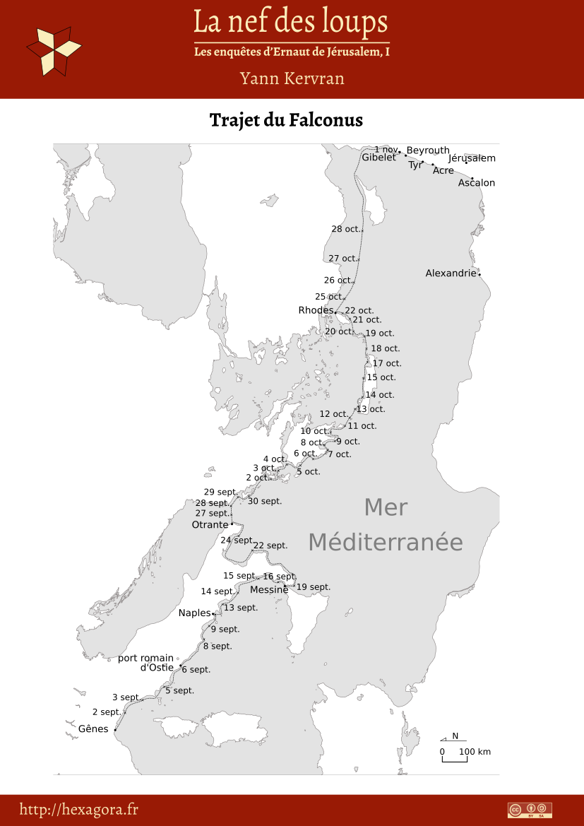 Si certains ont des velléités de refaire le voyage, quelques siècles plus tard, il leur est possible de récupérer le fichier .kmz : Trajet du Falconus (.kmz)